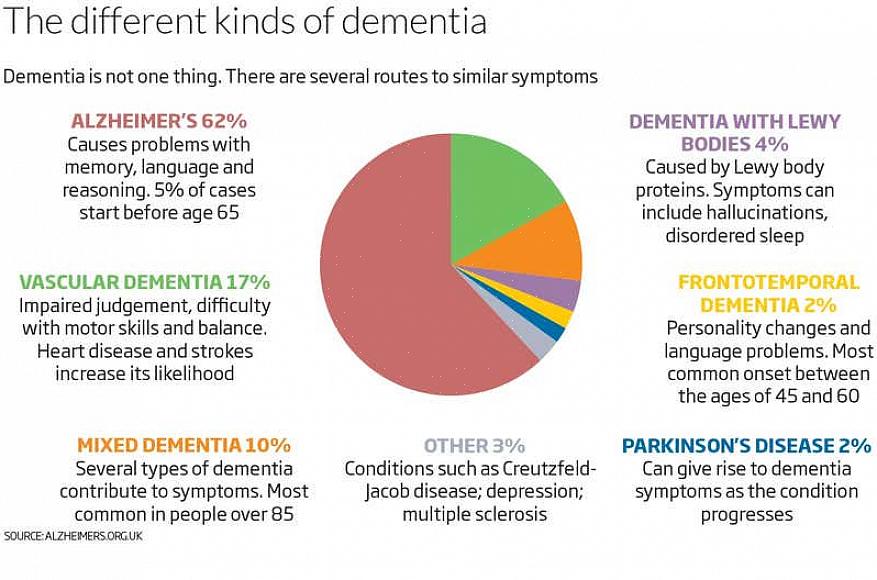 דמנציה כרוכה באובדן מתקדם של תפקודים קוגניטיביים (זיכרון, קשב, שפה...) ויכולות הסתגלות. הם יכולים לנבוע מסיבות שונות, בדרך כלל אורגניות. התקדמותם בסופו של דבר גורמת למטופל לחוסר יכולת לבצע את פעולות חיי היומיום. עם זאת, אילו סוגי דמנציה קיימים? במה כולם שונים זה מזה?