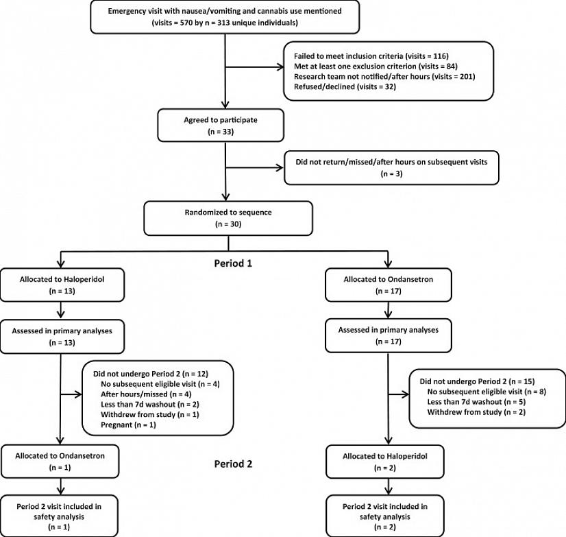 ההקאות נמשכות בדרך כלל בין יומיים לארבעה ימים ואינן מגיבות לטיפול הרגיל בתרופות נוגדות הקאה. מצד שני, אמבטיות חמות אכן מקלות על הסימפטומים של רוב החולים. עם זאת, אלה נעלמים לחלוטין רק עם הפסקת השימוש בקנאביס.