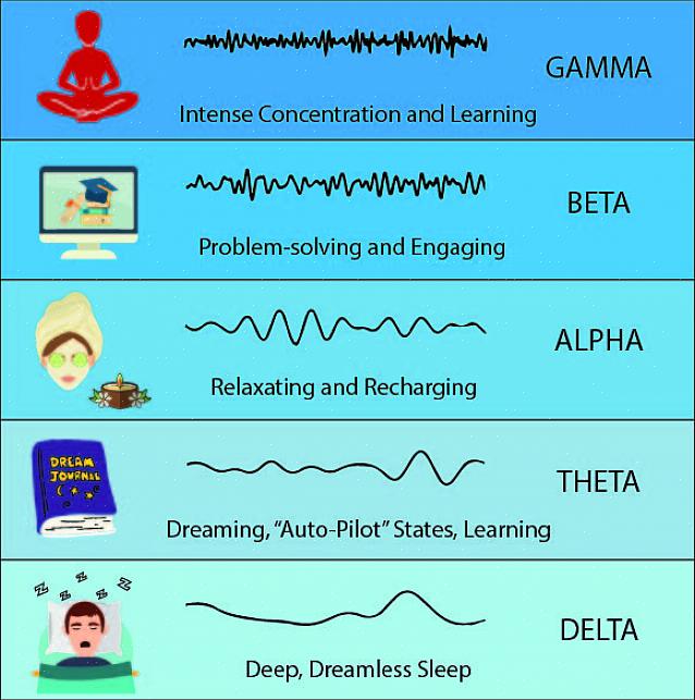 מדענים מאמינים כעת שישנם חמישה סוגים שונים של גלי מוח אנושיים. כולם נעים במהירויות שונות (נמדד בהרץ). גלי המוח האלה משתנים ללא הרף במהלך היום בהתאם למה שאתה עושה ומרגיש. לדוגמה, כאשר אתה מייצר גלי מוח איטיים יותר, אתה מרגיש רגוע ונינוח. עם זאת, כאשר גלי מוח בתדירות גבוהה יותר שולטים בך, אתה הופך להיות ערני במיוחד. בדוק אותם למטה.