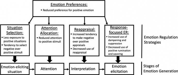 רגשיות שלילית לא מתייחסת רק לתחושות שליליות ואי נחת. זה גם אומר "לא מרגיש כלום". הסובל חווה אנהדוניה, שהיא חוסר היכולת לחוש הנאה, עניין או מוטיבציה.