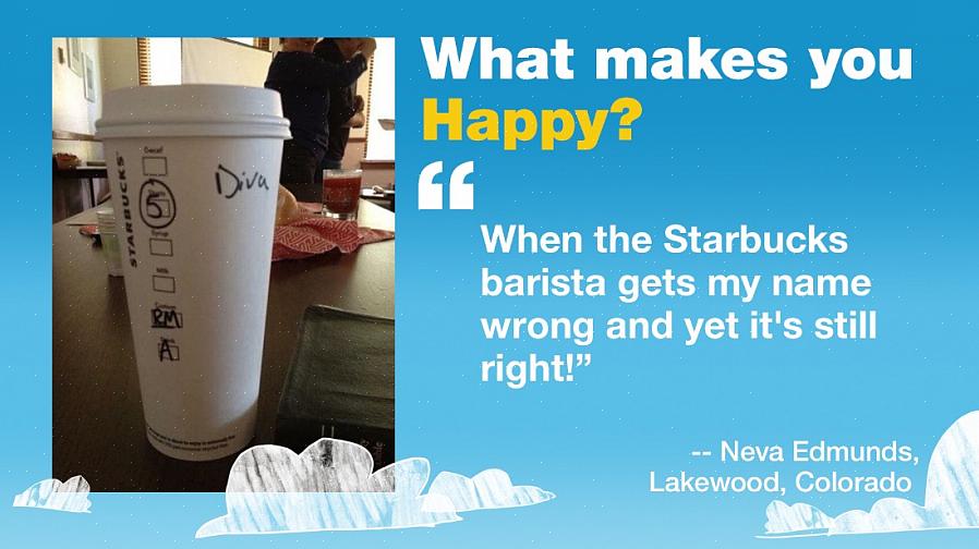 ריח הקפה בבוקר, החיוך של בתך הקטנה, ריקוד לשיר באמצע הסלון עם בן הזוג שלך, ריצה אחרי פרפרים עם הכלבים שלך, רואה את הכוכבים, שיחה טובה על החוף להרגיש את הרוח שלך פרצוף, פותח בקבוק יין באמבטיה חמה... אלו הדברים הקטנים שנותנים לנו אושר, אתה לא חושב?