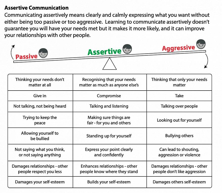 זה לא יעיל מכיוון שהם יתפוצצו מתישהו. הסיבה לכך היא שרגעים לא נוחים הם הזדמנות טובה לתרגל תקשורת אסרטיבית. מצבם של אנשים תמיד טוב יותר כשהם לא שותקים וכשהם מצהירים על הצרכים שלהם.