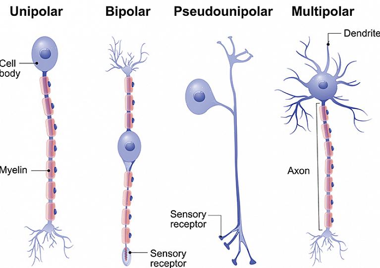 למרות שישנם סוגים רבים של נוירונים עם מבנים שונים, עדיין ישנם כמה אלמנטים נפוצים. המבנה התקין מורכב משלושה חלקים בסיסיים: הסומה, הדנדריטים והאקסון. איפור זה עוזר להם למלא את תפקידיהם כמחברים ומנהלי מידע.