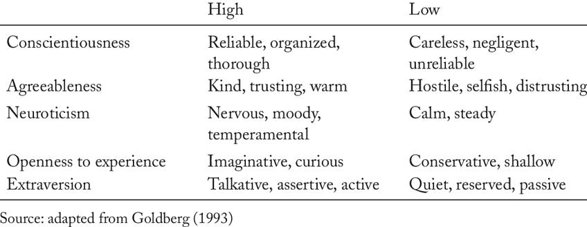חמשת הגדולים: תכונות האישיות של גולדברג