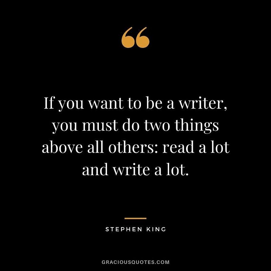 "אם אתה רוצה להיות סופר, אתה חייב לעשות שני דברים מעל כולם: לקרוא הרבה ולכתוב הרבה."