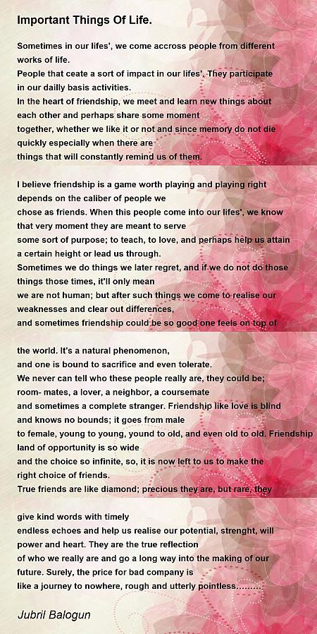 מצטער על נעוריו, סזאר מדגיש את תורתה של אמו שלא ידע להעריך באותה תקופה. הוא גם לא מזלזל בדמות האב ואומר שהם " כל אלה שחלומותיהם קטנים מדי עבורם, הם צריכים מעט שינה כדי להגשים אותם". בשיר זה הוא נותן לנו שיעור אמיתי באנושות.