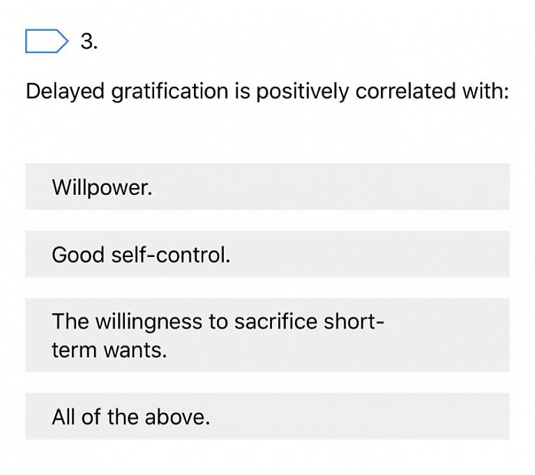 היכולת לחכות ולא להיכנע לסיפוק מיידי נותן לך את ההזדמנות להשיג תוצאות טובות יותר. עליך ללמוד לתכנן תוכנית, להתנסות ולהיכשל, וללמוד כיצד לפתור בעיה. עליכם לרכוש את המיומנויות והכלים שיאפשרו לכם להתעמת עם מצבים ולהשתמש במשאבים הרבים שיש לכם בהישג יד.