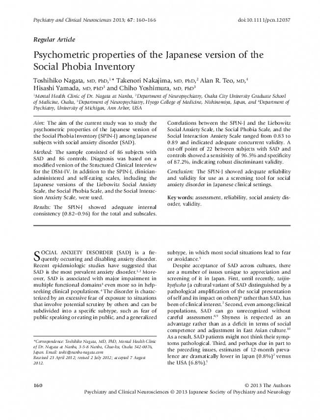 מכשיר זה הוכח כבעל תכונות פסיכומטריות נאותות. יתר על כן, יש לו מהימנות ותוקף טובים והוא מסוגל לזהות במדויק נוכחות של חרדה חברתית. נראה גם שהוא מסוגל להבחין בין הפרעות חרדה חברתית לבין חרדה כללית. לכן, זה מדד אמין.