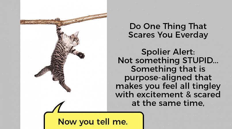 פחד הוא כוח שיכול לדחוף אותך לעשות דברים גדולים, או לשתק אותך. זה יכול להוביל אותך להמציא דרכים לטפל בעצמך ולהתמודד עם הסכנה או לגדר את עצמך מהעולם. כדי לוודא שהפחד לא יגדל ללא שליטה, אתה צריך להתמודד מולו חזיתית. ובזה טמון האתגר - לעשות משהו שמפחיד אותך כל יום.