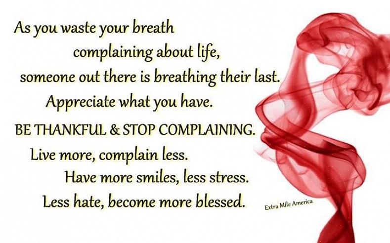על ידי גישה לזה כך, אתה לפחות מתחיל לפתור את הבעיה שהיא נושא התלוננות שלך, ולמקד את האנרגיה שלך למשהו פרודוקטיבי שיגרום לך להרגיש הרבה יותר טוב, במקום רק להתלונן.