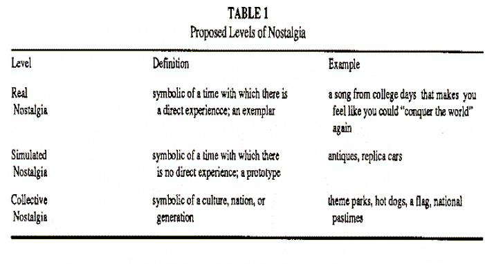יש גם שני סוגים שונים של נוסטלגיה, וההבדל הוא מאוד חשוב. הסוג הראשון הוא תחושה חיובית, זיכרון נחמד של חפץ שנעלם או אבד בזמן. הסוג השני הוא תחושה שלילית. זו הרגשה של כאב על משהו שאתה לא יכול לחזור אליו שוב, ובכל זאת אתה מקווה שהוא יחזור.