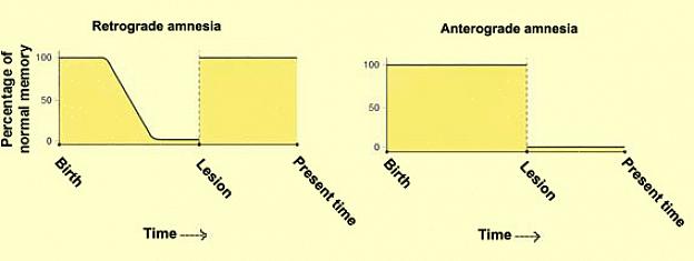 אז כאשר אנו חוקרים אמנזיה וזיכרון אפיזודי, עלינו להתמקד באיזו השפעה יש לנזק הזה. במילים אחרות, ישנם שני סוגים בסיסיים של אמנזיה. ראשית, יש אמנזיה רטרוגרדית: כאשר מישהו שוכח כל דבר שקרה לו לפני מחלתו או התאונה. ואז יש אמנזיה אנטרוגרדית: כשמישהו לא יכול ליצור זיכרונות חדשים. בסעיפים הבאים אנו הולכים להעמיק יותר בשני סוגי האמנזיה.