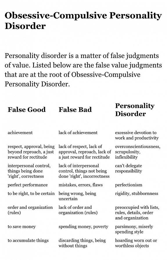 כפי שניתן להסיק מכל המאפיינים הללו, האמונה המרכזית של אנשים אלה היא הצורך לעשות דברים בצורה מושלמת והפחד והחרדה העזים להיכשל או לעשות טעויות.
