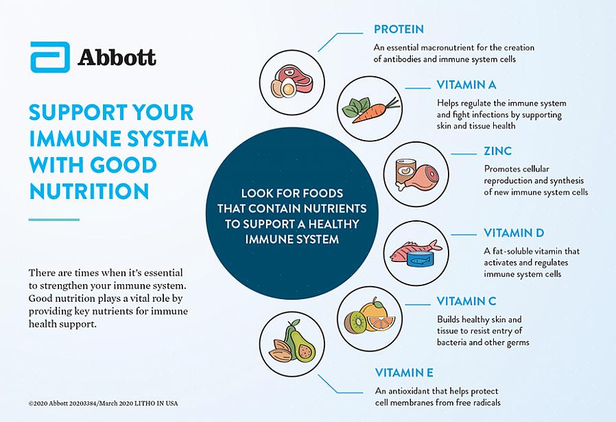 תזונה מאוזנת כוללת שומנים חד בלתי רוויים (אגוזים, סלמון, טונה, שמן זית), מוצרי חלב, חלבונים, פחמימות, ויטמינים, מינרלים ולפחות 5 מנות של פירות וירקות בכל יום. בנוסף, חומרים מזינים אחרים שיכולים להשלים את התזונה שלך ולעזור לחזק את המערכת החיסונית שלך הם: