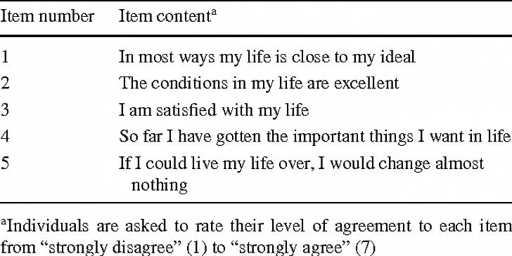 שביעות הרצון מסולם החיים (SWLS) ממשיך להיות הכלי הפופולרי ביותר למדידת רמות אושר. פסיכולוגים אד דינר, רוברט א. אמונס, רנדי ג'יי לארסן ושרון גריפין יצרו אותו בשנות ה-80. מומחים מייחדים זאת כאחת הדרכים הטובות ביותר לקבל מידע אמין על רמות שביעות הרצון של אנשים מחייהם. הם השתמשו בו בהצלחה על מבוגרים, בני נוער ואנשים ממעמדות חברתיים מגוונים. בנוסף, מומחים יכולים להשתמש בו בכל מדינה ותרבות.