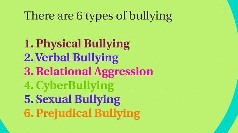 זה אומר שיש גם צורות שונות של בריונות. אז עכשיו אנחנו הולכים להסתכל על כמה מאלה שמתווה המרכז הלאומי נגד בריונות. נפרט עבור כל אחד מהם כדי שתוכל להבין טוב יותר ממה כל אחד מורכב.