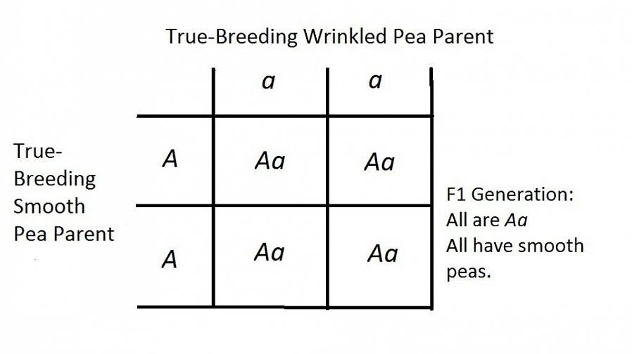 לאחר מכן הוא האבק בעצמו את צאצא ה-F1 והשיג ארבע תכונות שונות. לדוגמה, זרעים מקומטים-צהובים, עגולים-צהובים, זרעים מקומטים-ירוקים, וירוק עגול ביחס 9:3:3:1.