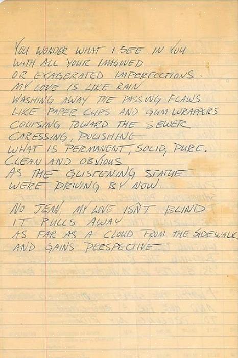 "אני אוהב אותך מכל כך הרבה סיבות. גדולים וקטנים. וכולם נפלאים. אני אוהב אותך על כל התכונות המיוחדות שהופכות אותך לייחודית...היחידה בעולם בשבילי. אני אוהבת אותך על הדברים שאתה עושה שמביאים משמעות מיוחדת לחיי. אני אוהב אותך על הזמנים השקטים שבהם העיניים והזרועות שלך אומרות לי כל מה שאני רוצה לדעת. אני אוהב אותך רק בגלל שאני עושה זאת. כי עכשיו, בחלק העמוק ביותר של הלב שלי...מקום שלא היה בו כלום קודם, יש אהבה."