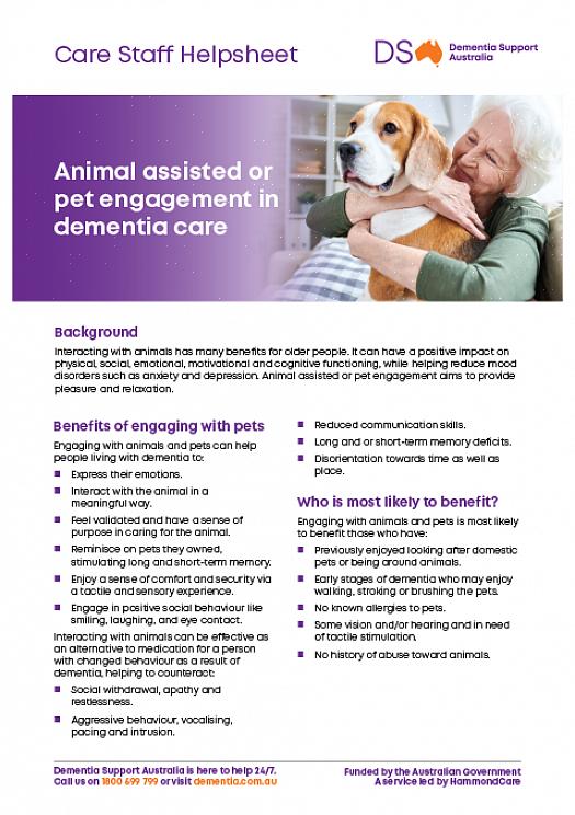 חיית מחמד יכולה לשנות באופן משמעותי את חייו של אדם עם דמנציה. הסיבה לכך היא שיש מישהו לאהוב שזקוק לו הוא מניע חזק, שבתורו, מעדיף אותו ברמה הפיזית והרגשית.