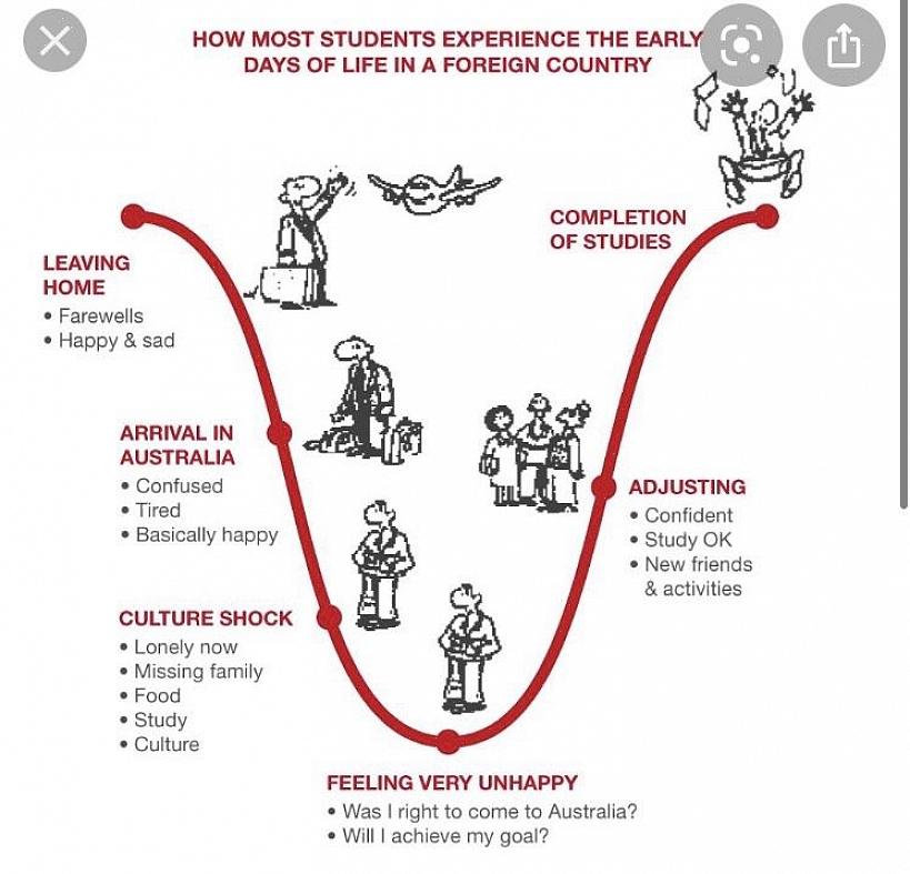 הצורך להסתגל לתרבות חדשה, לשפה חדשה ולאורח חיים שונה מייצר השפעה רגשית של ממש. זהו הלם תרבותי. במילים אחרות, זו חוויה שבה רגשות כמו פחד, עצב, אופוריה, בלבול וחוסר ודאות שולטים.
