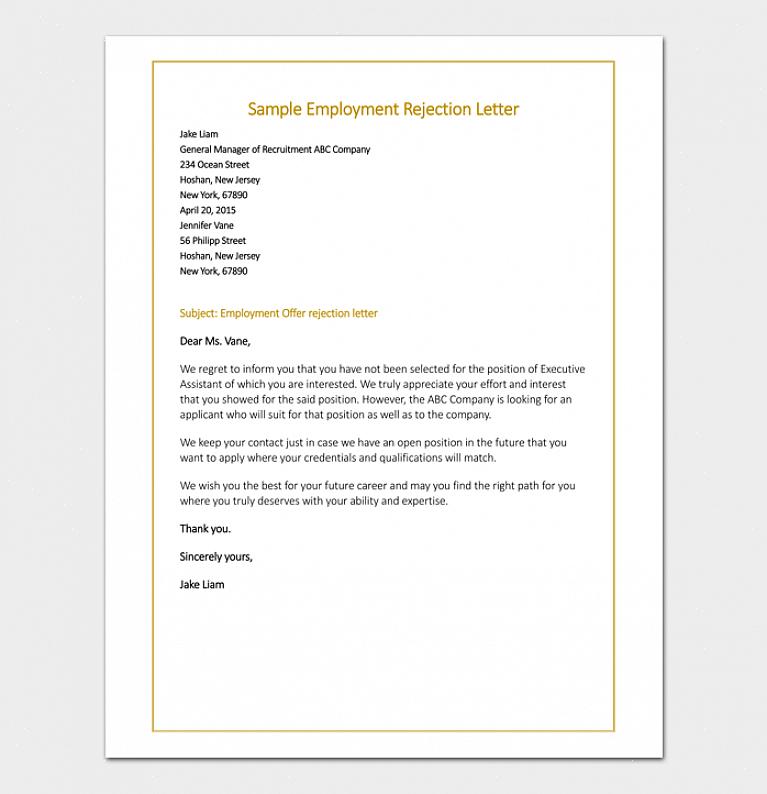 אותו דבר יכול להתרחש אם אתה מקבל הזדמנות עבודה מחברה שהתעניינה בפרופיל המקצועי שלך. במקרים אלו, אם התנאים אינם מתאימים לך, ייתכן שיהיה לך קל יותר לדחות את הצעת העבודה.