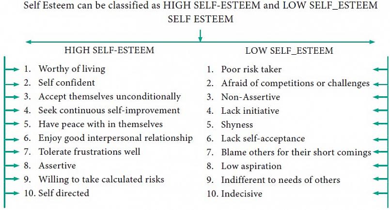 אנשים שיש להם הערכה עצמית נמוכה הם ההיפך מאלה עם הערכה עצמית גבוהה. הם לא מעריכים את עצמם, הם לא סומכים על האפשרויות שלהם, וחוסר הביטחון שאולי הם מרגישים מועבר כמעט לכל מצב. פחד מכישלון הוא משהו שמייסר אותם ומחזיק אנשים עם הערכה עצמית נמוכה. הם המודל של אנשים אומללים.