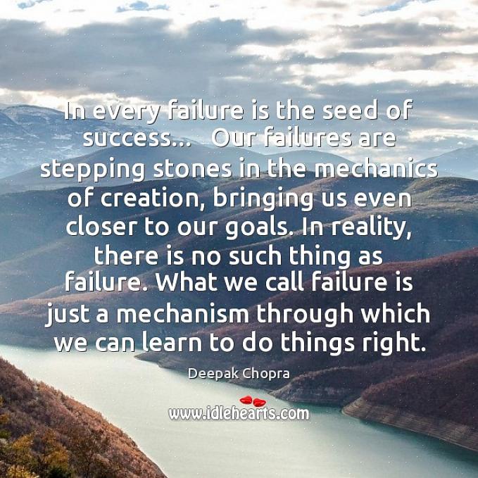 זה נכון שכישלון הוא לא משהו שאנחנו יכולים לשלוט בו. האמת היא שאם אתה רוצה להגיע להצלחה, אתה צריך להניח שאתה הולך לעשות טעויות בדרך. מה שנמצא בשליטתנו הוא היכולת להתמיד בכל מה שעלול לקרות, ואז נוכל להשקיע את האנרגיות שלנו ולהשיג תוצאות חיוביות באמת.