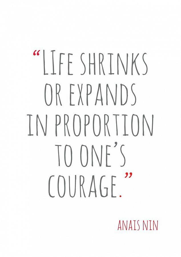 אחד הציטוטים היפים והמרוממים ביותר של אנאיס נין הוא: "החיים מתכווצים או מתרחבים לפי האומץ של האדם".במילים אחרות, אומץ הוא זה שקובע את קנה המידה ואיכות חייך.