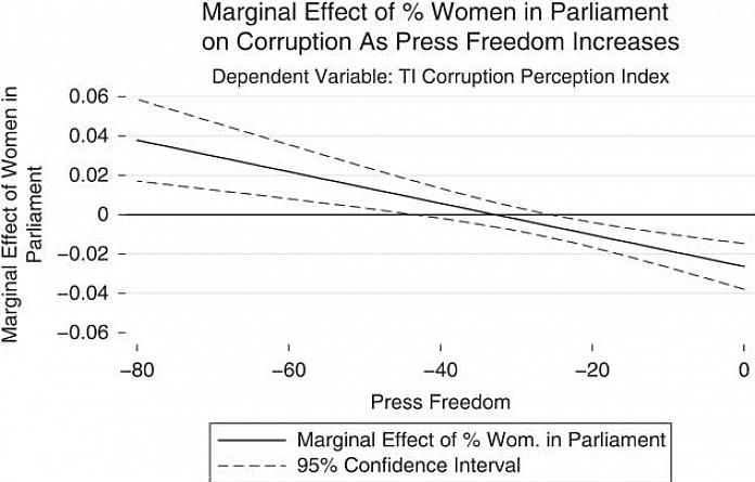 עם זאת, במדינות שבהן שולט 'ממשל תקין', הגדלת הייצוג הפוליטי של נשים מסיתה אותן לתמוך בצעדי חקיקה הקשורים לנורמות חברתיות. זה יסביר מדוע במקומות כמו אירופה (שם ברור שקיימת שחיתות, אבל זו לא נורמה חברתית במובן שלא כולם מקבלים התנהגות מושחתת), חשוב לעודד השתתפות פוליטית של נשים כדי להילחם בשחיתות.