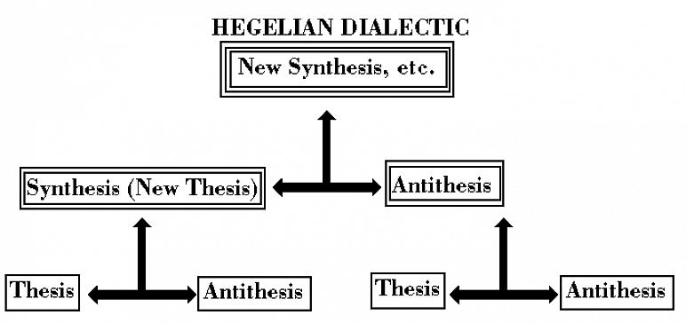 לפי הגל, דיאלקטיקה היא צורת חשיבה שבה שתי תזות מנוגדות. יחד עם זאת, זה מוביל למושגים חדשים. יש תזה שמעלה נימוקים מסוימים, ואחריה אנטיתזה שחושפת את הבעיות והסתירות שלה. הסינתזה נובעת מהדינמיקה שבין התזה לאנטיתזה, והיא הופכת לפתרון או נקודת מבט חדשה על העניין.