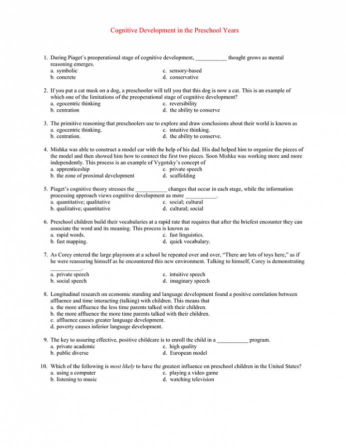 ז'אן פיאז'ה הבחין בארבעה שלבים של התפתחות החשיבה של ילדים: