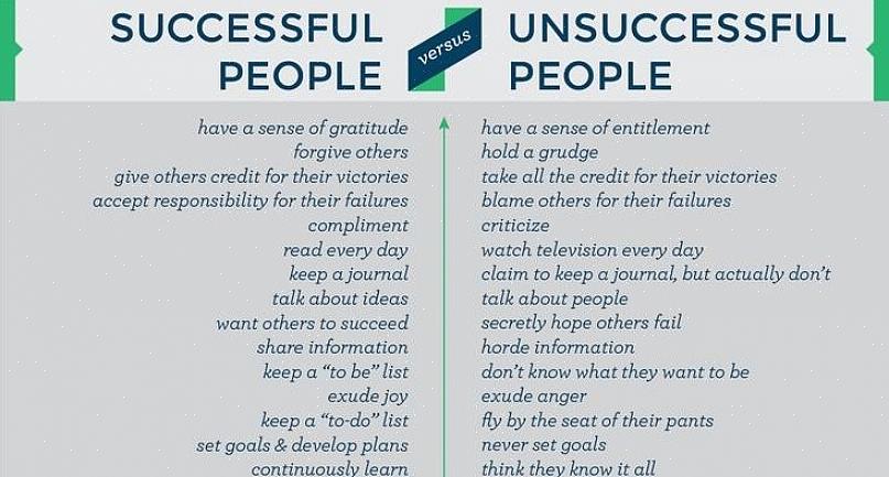 בנוסף, הצלחה דורשת ענווה. עלינו להכיר בכך שאנו תמיד יכולים להיות טובים יותר. אנחנו גם צריכים להיות מאוד מודעים לכך שאנחנו לא יכולים להשיג הרבה הצלחה לבד. זה נכון לא משנה כמה ברי מזל אנחנו עשויים להיות. אדם מצליח מתרגל לחפש הזדמנויות לצמוח.