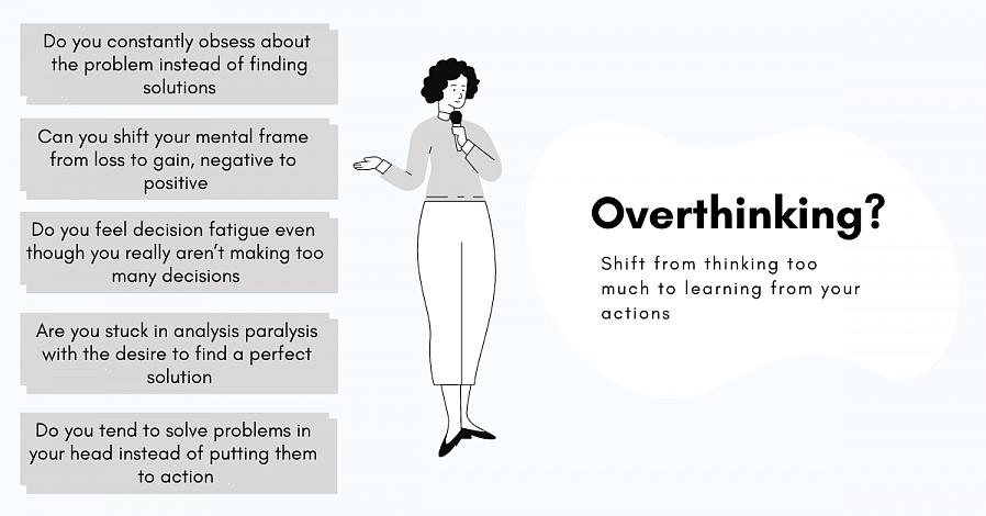 התגובה הראשונה לחרדה הנגרמת מחשיבה יותר מדי היא פשוט לשנות את מה שאנו אומרים לעצמנו. לפי רעיונות כמו סטואיות, מה שקורה לנו כמעט ואינו חשוב. הפסיכולוגיה הקוגניטיבית המודרנית משתמשת ברעיון הזה כדי ללמד אותנו לשקול דברים בפרספקטיבה.