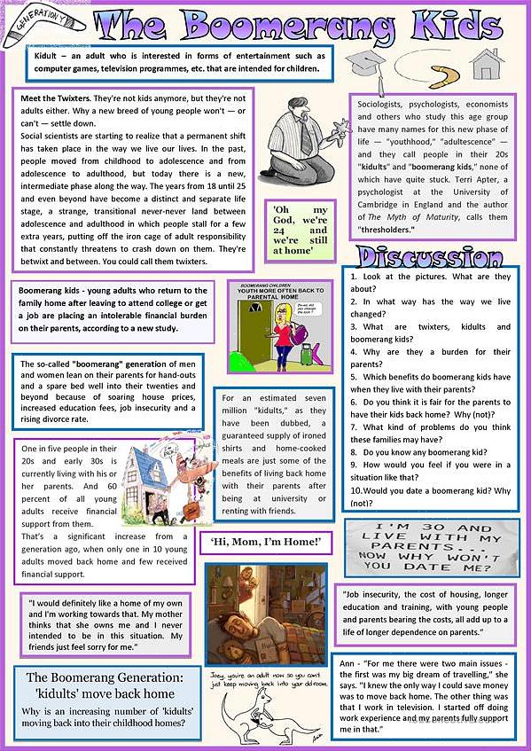 אחת הטרנדים הצומחים ביותר בעולם המערבי הוא דור הבומרנג. הדור הזה מייצג ילדים שחוזרים לגור עם הוריהם לאחר שהם היו עצמאיים לזמן מה. להיות עצמאי יכול להיות אומר כמה דברים שונים גם בהקשר הזה. יכול להיות שהם פשוט גרו במעונות במהלך שנות הקולג' שלהם או שהם מבוגרים יותר וצריכים לחזור לגור בגלל שהם איבדו את עבודתם.
