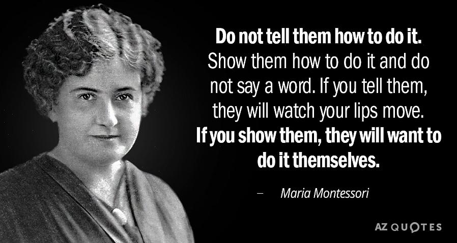 אחד הציטוטים הטובים ביותר של מריה מונטסורי הוא, "במציאות, מי שמשרת מוגבל בעצמאותו. תפיסה זו תהווה את הבסיס לכבודו של איש העתיד; 'אני לא רוצה שישרתו אותי, כי אני לא חסר אונים'. ואת הרעיון הזה צריך להשיג לפני שגברים יוכלו להרגיש שהם באמת חופשיים."