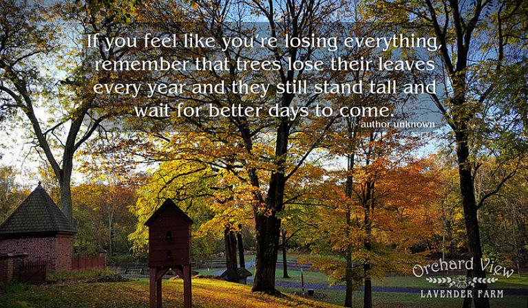 העץ עדיין עומד, והוא יודע שעלים אחרים יחליפו את אלו שנפלו. זמנים מאושרים יחזרו, יחד עם העלווה השופעת והצמחייה הירוקה שאכלסו את הענפים שלכם.