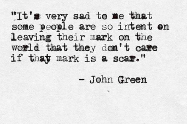 אבל האנשים הם אלה שמותירים סימנים, לא צלקות, שעלינו לתת להם את מלוא תשומת הלב. להיות מודעים לכמה הם תרמו לחיינו, מבלי לקחת מאיתנו דבר. אין צורך לסבול או להיות פצע כדי שמישהו יסמן אותנו. הסימנים הטובים ביותר הם עדינים, מורגשים רק למי שיודע להעריך אותם.