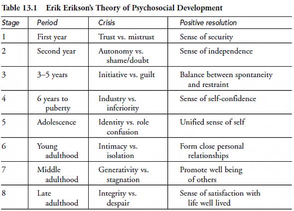 אריקסון היה חלוץ בהתחשב בכך שהתפתחות העצמי היא תהליך לכל החיים. הוא הבין את ההתפתחות כרצף של שמונה שלבים המתבטאים לאורך מחזור החיים האנושי. בכל שלב, הפרט צריך: