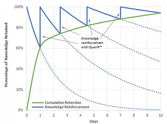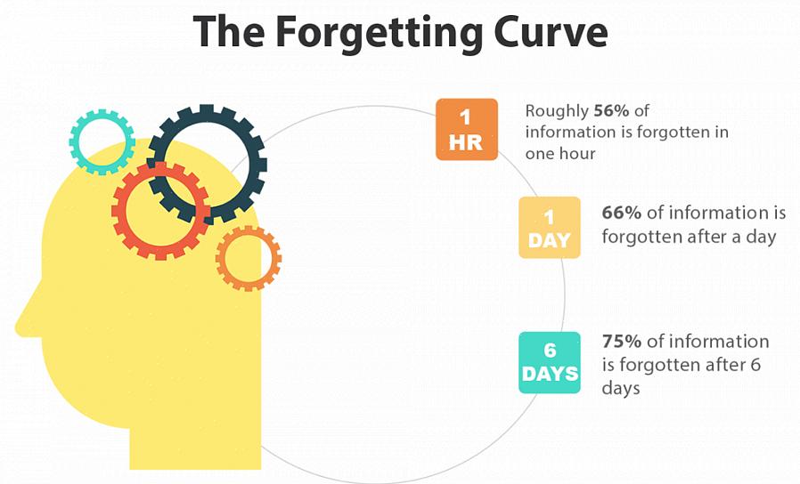 הנה דוגמה מעשית לכמה מהר אנחנו שוכחים מידע, ובכך מדוע קיימת עקומת השכחה. אם לא תבדוק את המידע, יום לאחר לימוד זה תשכח 50% ממה שלמדת. יומיים לאחר מכן, לא תזכור אפילו 30%. שבוע לאחר מכן, יהיה לך מזל לזכור יותר מ-3%.