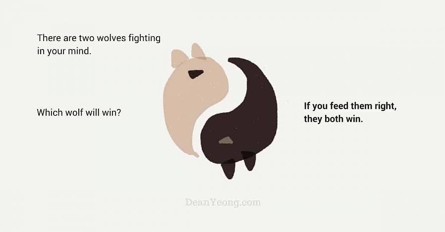 אגדת צ'ירוקי זו של שני הזאבים מסבירה שלא מדובר בהאכלת זאב בודד ולהרעיב את האחר. בני אדם עשויים בעצם מיינג ויאנג. זוהי דואליות שבה, רחוק מלהשליך או להסתיר חלק מאיתנו, עלינו לקחת אותו בחשבון, להפוך אותו לגלוי ולשלוט בו כדי לחיות באיזון.