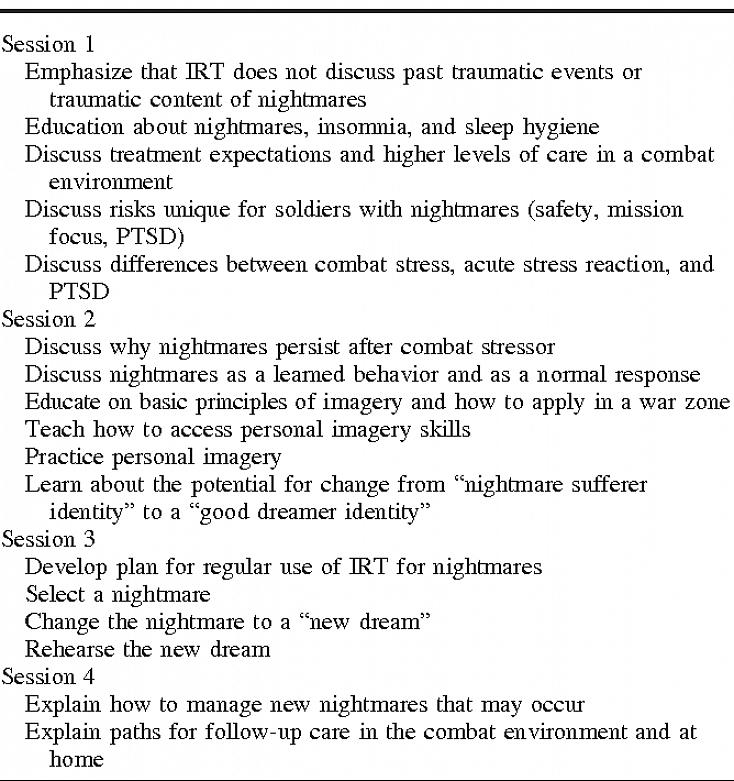 בשלב זה, המטפל מבקש מהאדם לבחור את הסיוט איתו הוא הולך לעבוד. הם צריכים לכתוב על זה סיפור. לאחר מכן, הם מעודדים את המטופלים שלהם לשנות את כל מה שהם רוצים מהתוכן שלהם ולשכתב אותו. עליהם לתאר את רצף התמונות החדש הזה בפירוט.