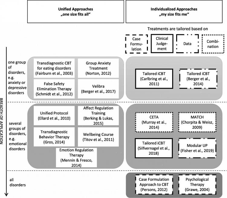 בדרך כלל, מטפלים לומדים להשתמש בטיפול ספציפי לכל פסיכופתולוגיה. עם זאת, כמה מחקרים הראו ששימוש באותו טיפול עבור קטגוריה שלמה של הפרעות יכול להיות יעיל יותר וגם יעיל יותר. מושג זה נקרא טיפול טרנסדיאגנוסטי.