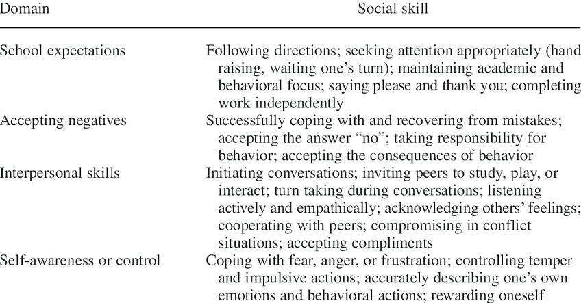 סוגי מיומנויות חברתיות