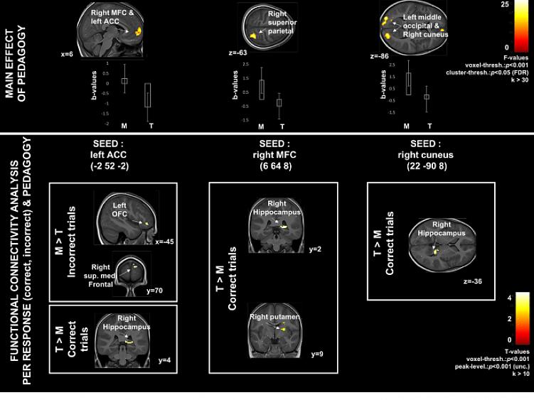 עם למידה של מונטסורי, שפותחה ברגע שזה עדיין לא היה ידוע, ניתנת עזרה לפיתוח פונקציות אלו באמצעות פעילויות שונות, כגון המתנה, חיפוש חומר על ידי מעבר במבוך שנוצר על ידי שותפים שעושים פעילויות אחרות וכו'. שילדים שלמדו בגני מונטסורי מפגינים ביצוע טוב יותר במשפחה זו של תהליכים נפשיים מוחי-שדרתיים.