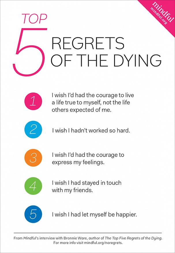 מחקרים רבים בדקו את התשובה לשאלה: על מה רוב האנשים מתחרטים? אחד מהמחקרים הללו התפרסם. הוא חקר אנשים שעמדו למות בגלל מחלות סופניות או סתם זקנה.
