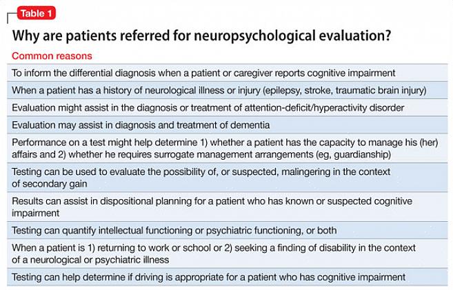 הם גם מאפשרים לרופאים להבדיל בין אבחנות אפשריות עם אותו פרופיל קליני. במילים אחרות, הערכה נוירופסיכולוגית היא המפתח להבחנה בין מחלות. זה יכול לעזור לקבוע את הסיבה לשינויים הקוגניטיביים של המטופל. לדוגמה, האם שבץ מוחי או דיכאון עמוק גורמים לשינויים.