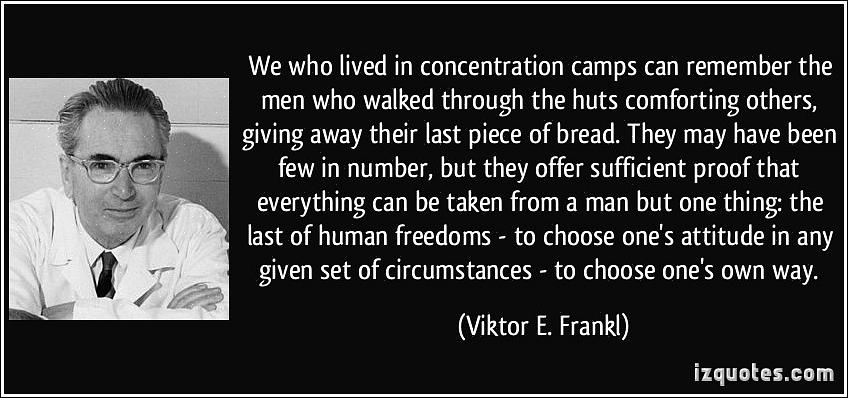 ויקטור פרנקל, פסיכיאטר וסופר, הוכנס לאושוויץ, דכאו ומחנות ריכוז אחרים במהלך מלחמת העולם השנייה. באמצעות חוויה זו, הוא פיתח פילוסופיית חיים שאותה יבטא במספר ספרים, במיוחד ב"חיפוש האדם אחר משמעות".