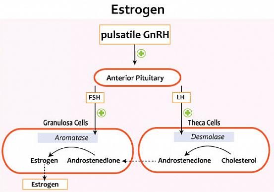 המבשר של הורמונים אסטרוגנים הוא כולסטרול. זה נוצר תוך תאי מרדיקלי אצטט. זה יכול גם להיות משולב על ידי תאים ולהשתמש במיטוכונדריה.