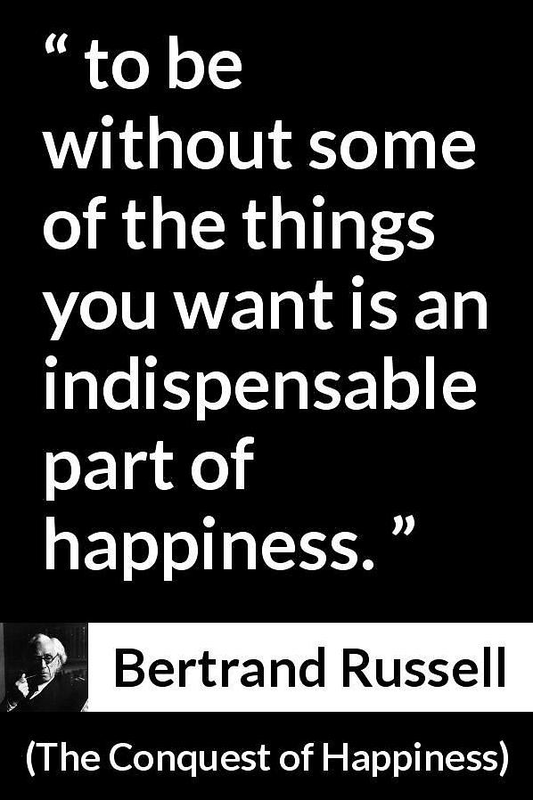 חייו של ברטרנד ראסל עצמו מראים לנו משהו שהוא טען מאוחר יותר: אושר הוא כיבוש. זה לא קורה מעצמו, וגם לא מגיע מבחוץ. היכולת להיות מאושר היא בדיוק זה: יכולת. אנחנו צריכים לעבוד על זה ולטפח את זה כדי להשיג את זה. לכן שתי מעלות חיוניות בתהליך הזה: מאמץ והשלמה.