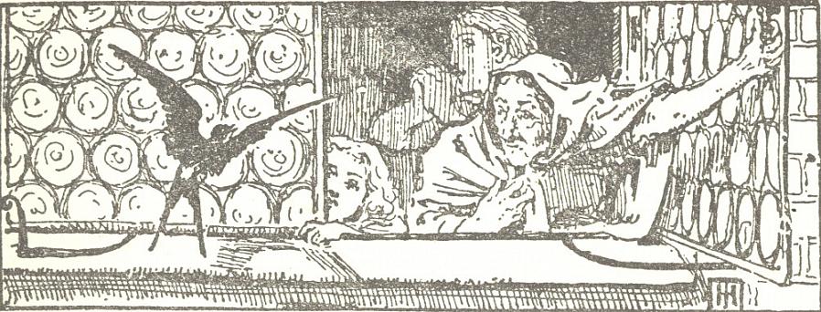 בתוך הבית הקטן הוא שם את החרקים והמים, וגם כמה בדי משי כמיטה. כשראה איך היא באה להתיישב על אדן החלון, הוא הביא את הבית הקטן ונהנה לצפות בציפור כשהיא שותה את המים ומנצלת היטב את האוכל שהכין עבורה. "אתה אוהב את החרקים האלה, סנונית מתוקה שלי?" הוא שאל. "תפסתי אותם בשבילך", הוסיף. בטריצה קצרה נראה היה שהסנונית מהנהנת לפני שעפה שוב.